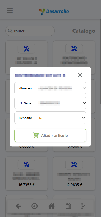 Se l’articolo ha un numero di serie, la quantità viene sostituita da un elenco per scegliere il numero di serie, in base al magazzino scelto.