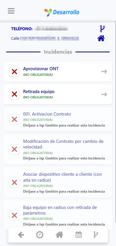 Qui registriamo gli incidenti relativi al flusso di lavoro. Il sistema consente di eseguire determinate azioni, come il provisioning di un ONT, la rimozione di apparecchiature e altre operazioni correlate.