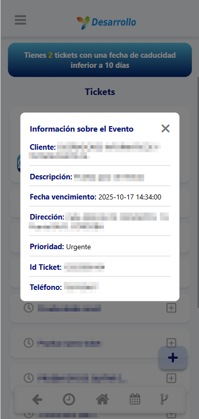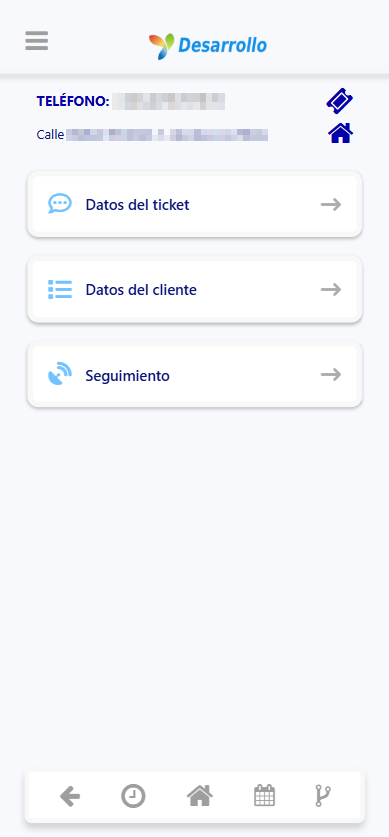 Selezionando un ticket, accederemo al suo contenuto, mostrando i dati del ticket e del cliente. L’icona della casa consente di visualizzare la posizione esatta sulla mappa.
