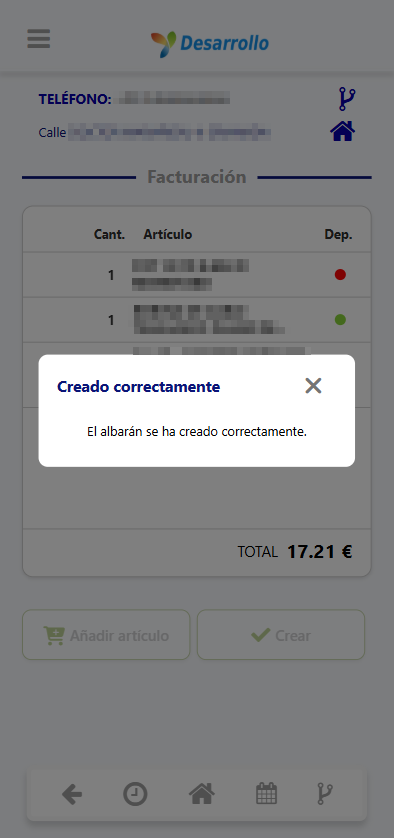 Infine, cliccando su Crea, verrà generata una bolla di consegna e gli articoli (se presenti) verranno depositati in Gestione ISP, con un pop-up di conferma che indica che il processo è stato completato con successo.