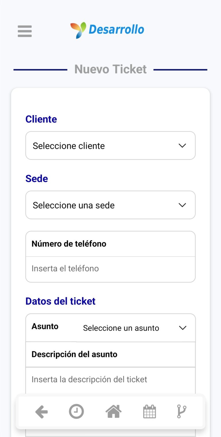 Per generare un nuovo ticket, l’utente premerà il pulsante (+) situato nell’angolo in basso a destra dello schermo. Questo aprirà il modulo per inserire i dati del nuovo ticket.