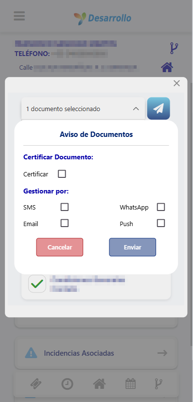Una volta selezionato il documento da firmare, possiamo stabilire le diverse opzioni disponibili per la firma, come la Certificazione del Documento o il tipo di gestione per la sua consegna.