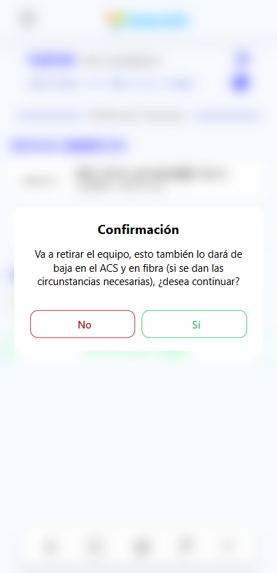 Da questa schermata, l’utente selezionerà l’ONT per eseguire la rimozione del dispositivo, visualizzando un avviso di conferma prima di procedere con l’operazione.